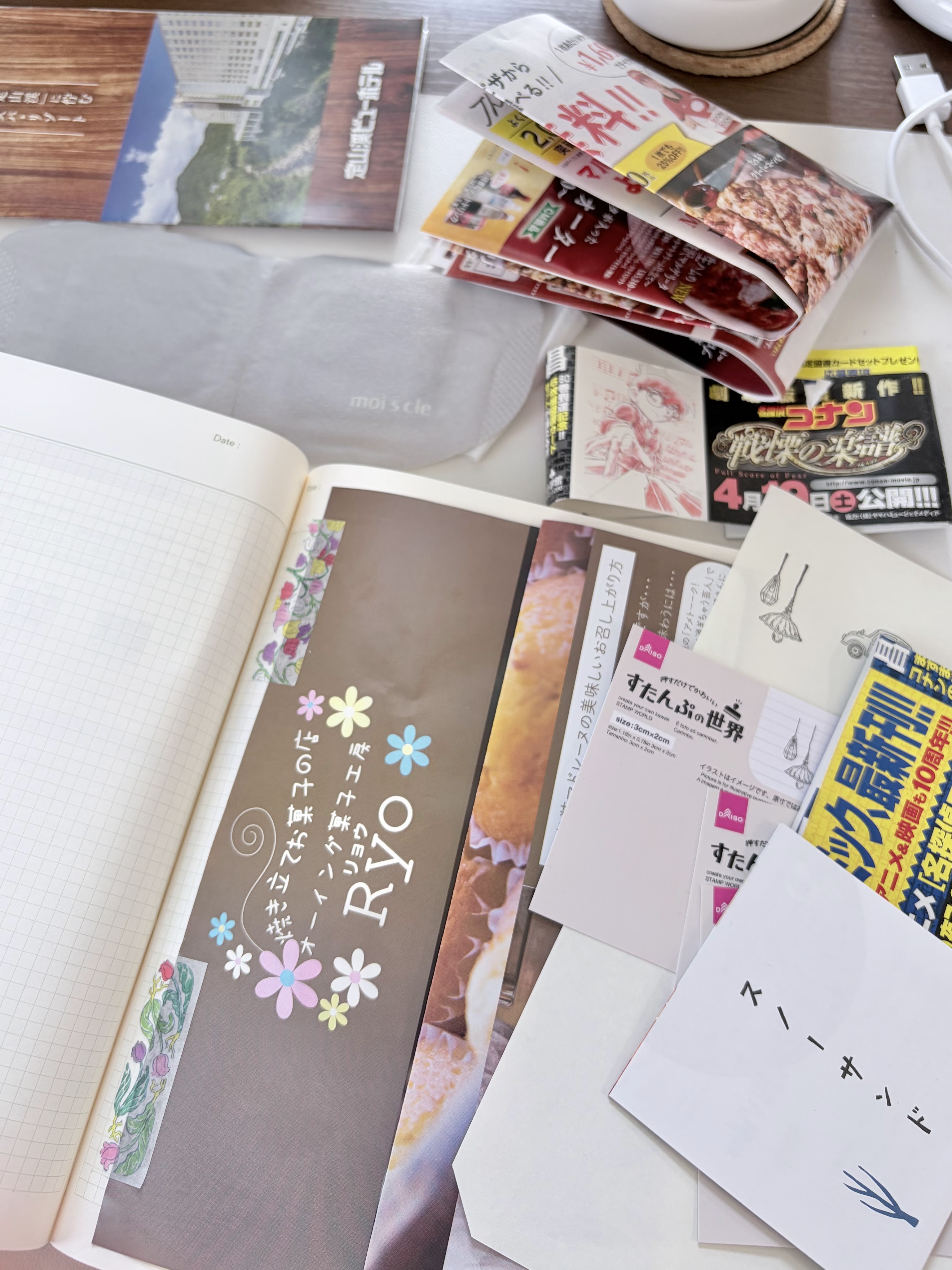 何でもかんでも記録している「サブノート」に貼りたい紙もので溢れておりました(謎に使い終わったホットアイマスクも混ざっている)